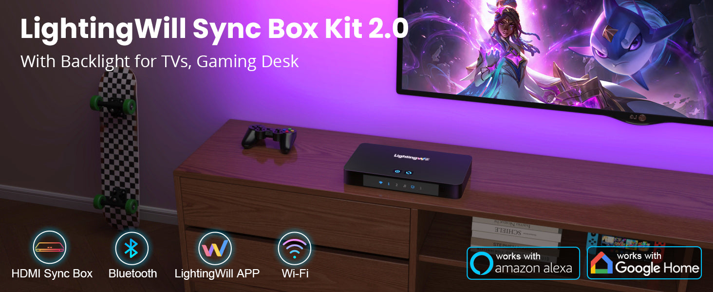 The LightingWill HDMI 2.0 Sync Box Kit enhances your viewing and gaming with immersive lighting and smart control, creating the perfect home entertainment ambiance.