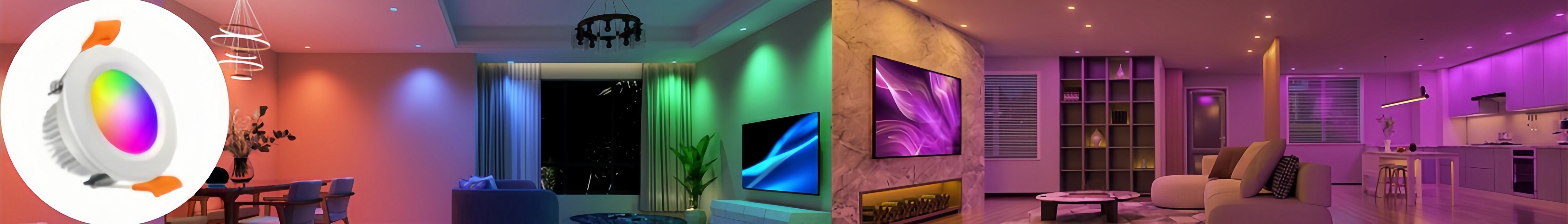 Smart RGB Downlights bring intelligent control and vibrant ambient lighting to modern interiors, supporting App, voice, and remote operation. With full RGBW color and compatibility with Tuya, Alexa, and Google, they make it easy to create dynamic scenes for everyday living and entertainment spaces.