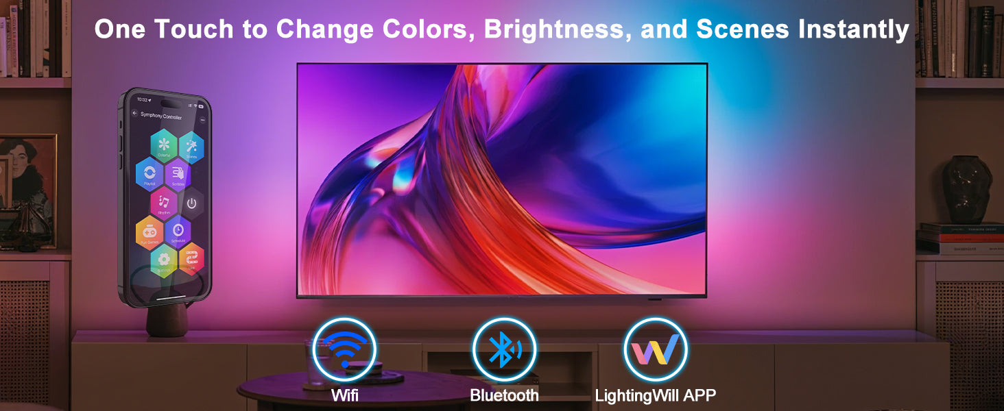 The LightingWill CST1 TV Backlight transforms your viewing experience with vibrant, customizable lighting and a sleek, minimalist design — perfect for enhancing any space with immersive ambiance and effortless control.